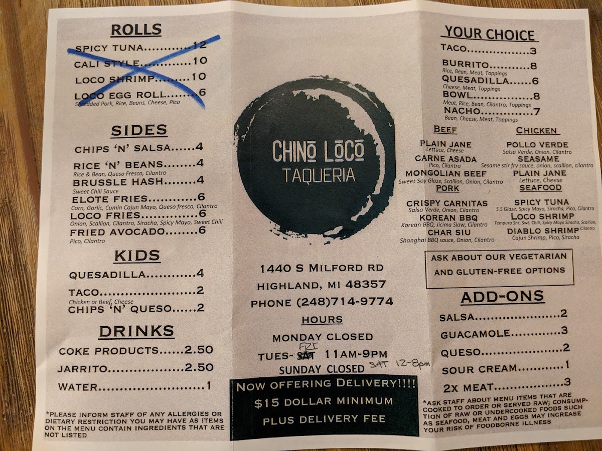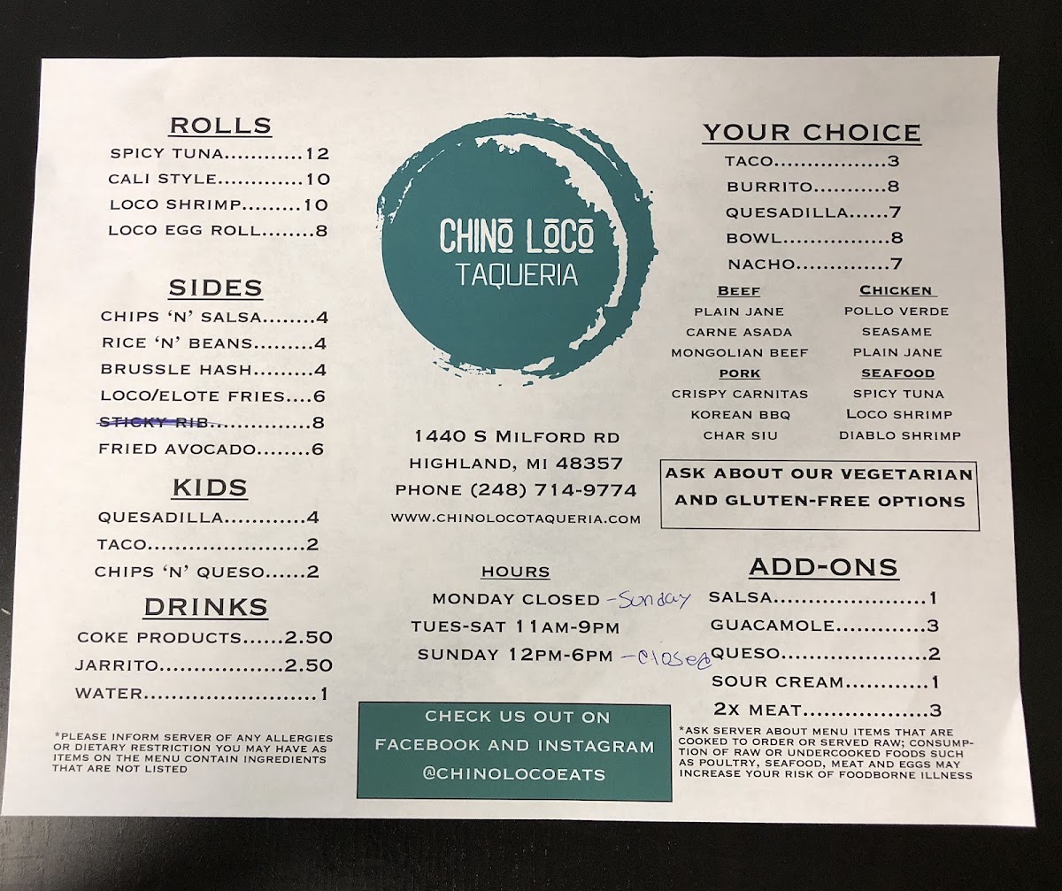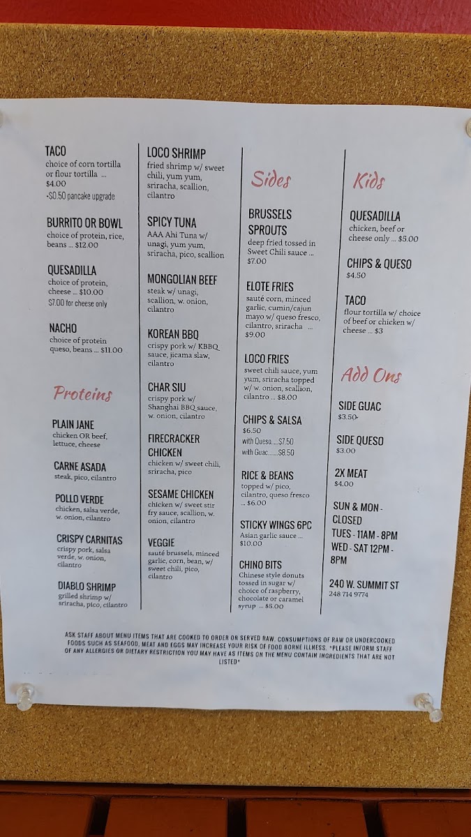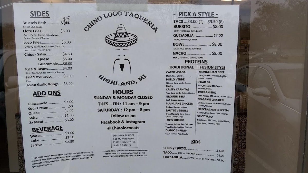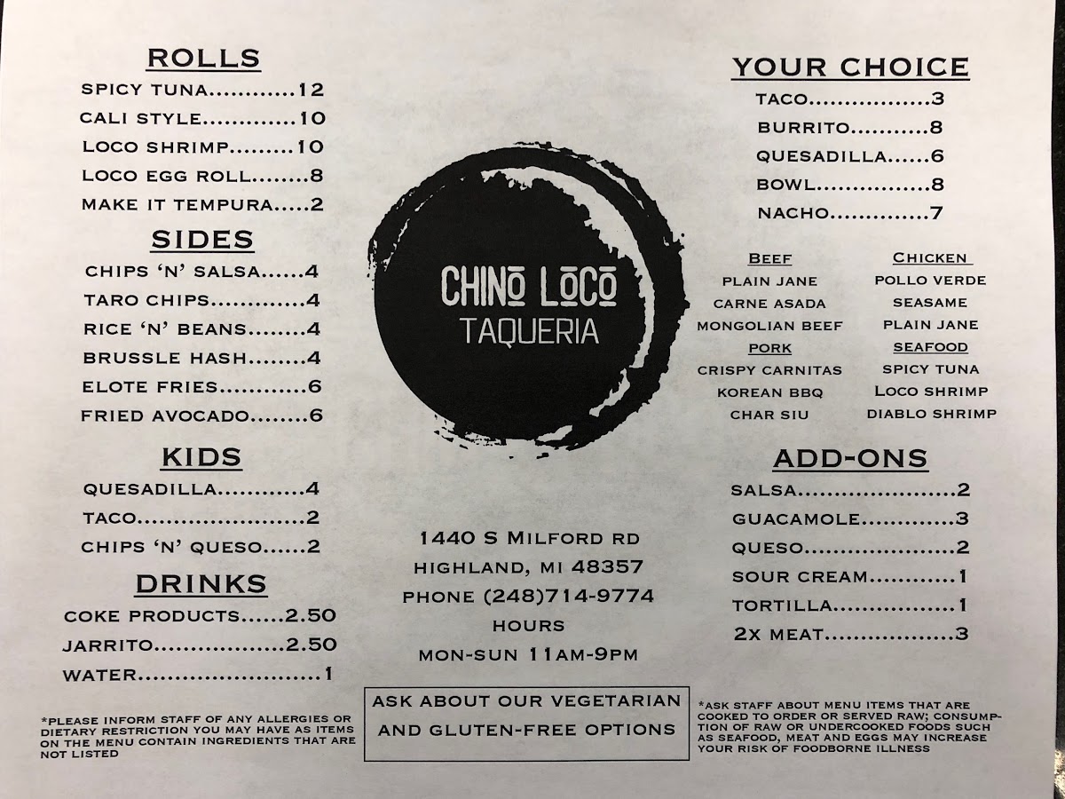 Introducing the vibrant menu of Chino Loco, a culinary gem located at 240 W Summit St, Milford, MI. This unique eatery offers a delightful fusion of flavors that expertly merges comfort food with a twist.